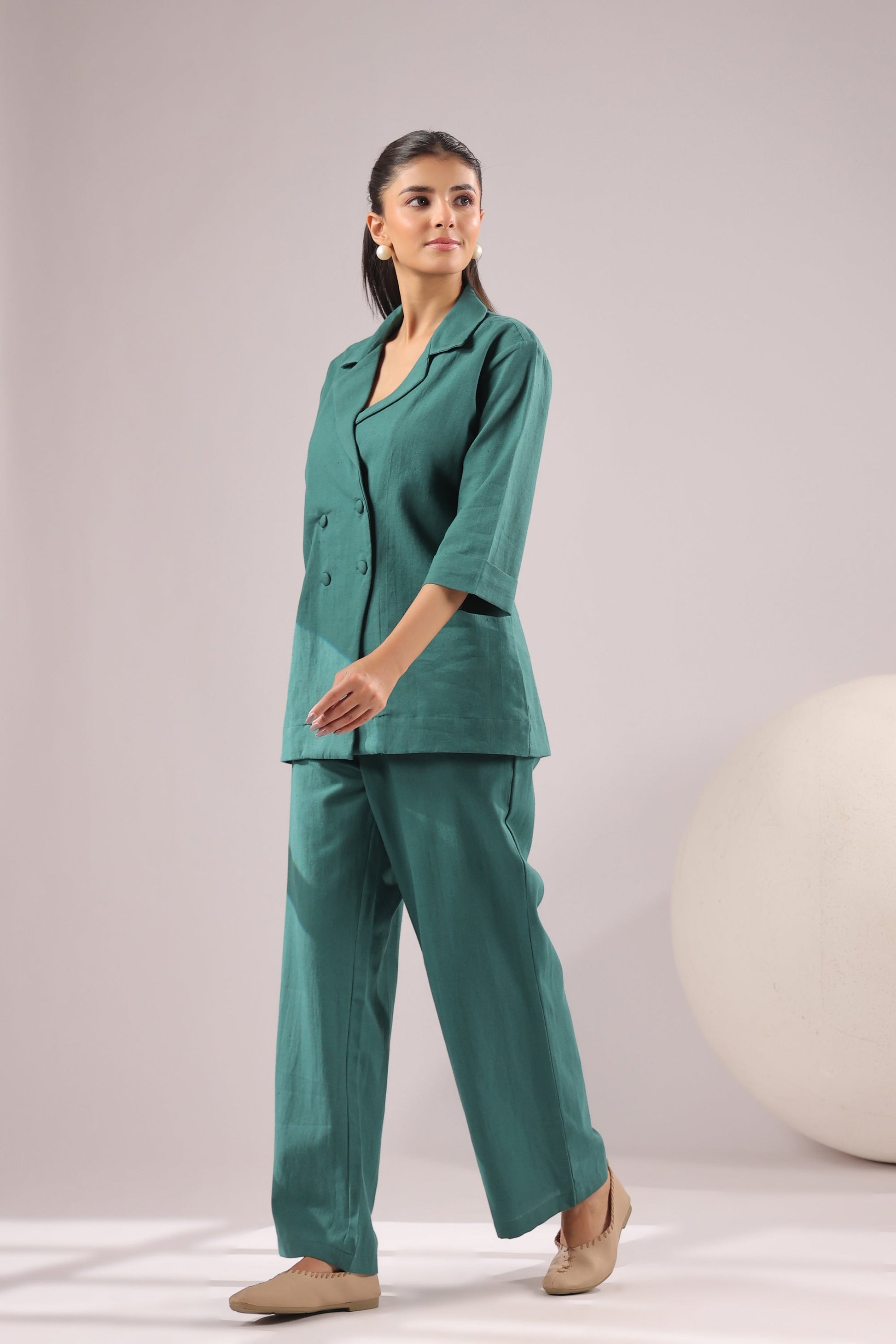 Emerald Ease Solid Cotton Flex Co-ord Set
