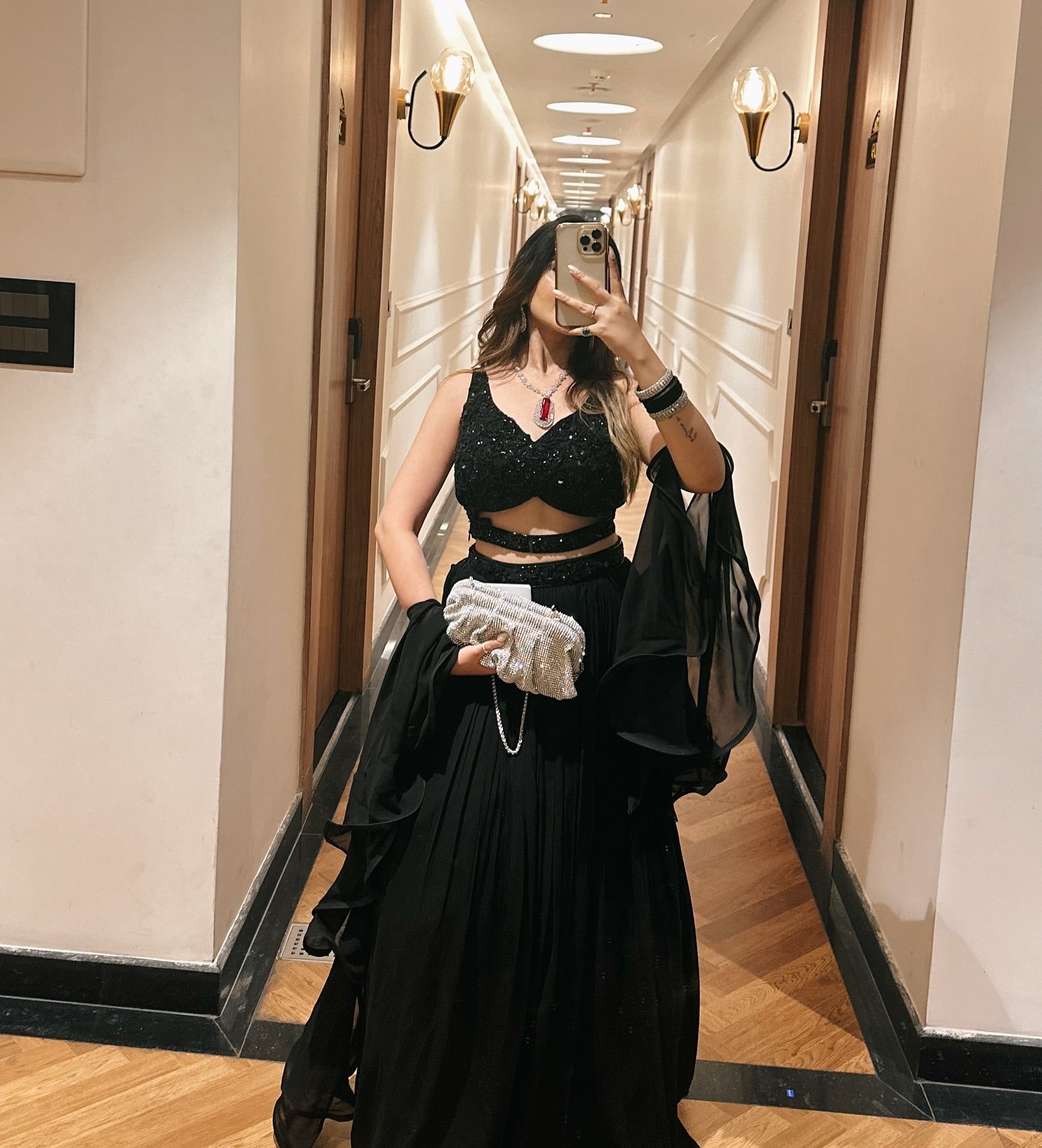 Stunning Black Georgette Party Wear Lehenga Whit Sequence Work Blouse Lehenga Choli