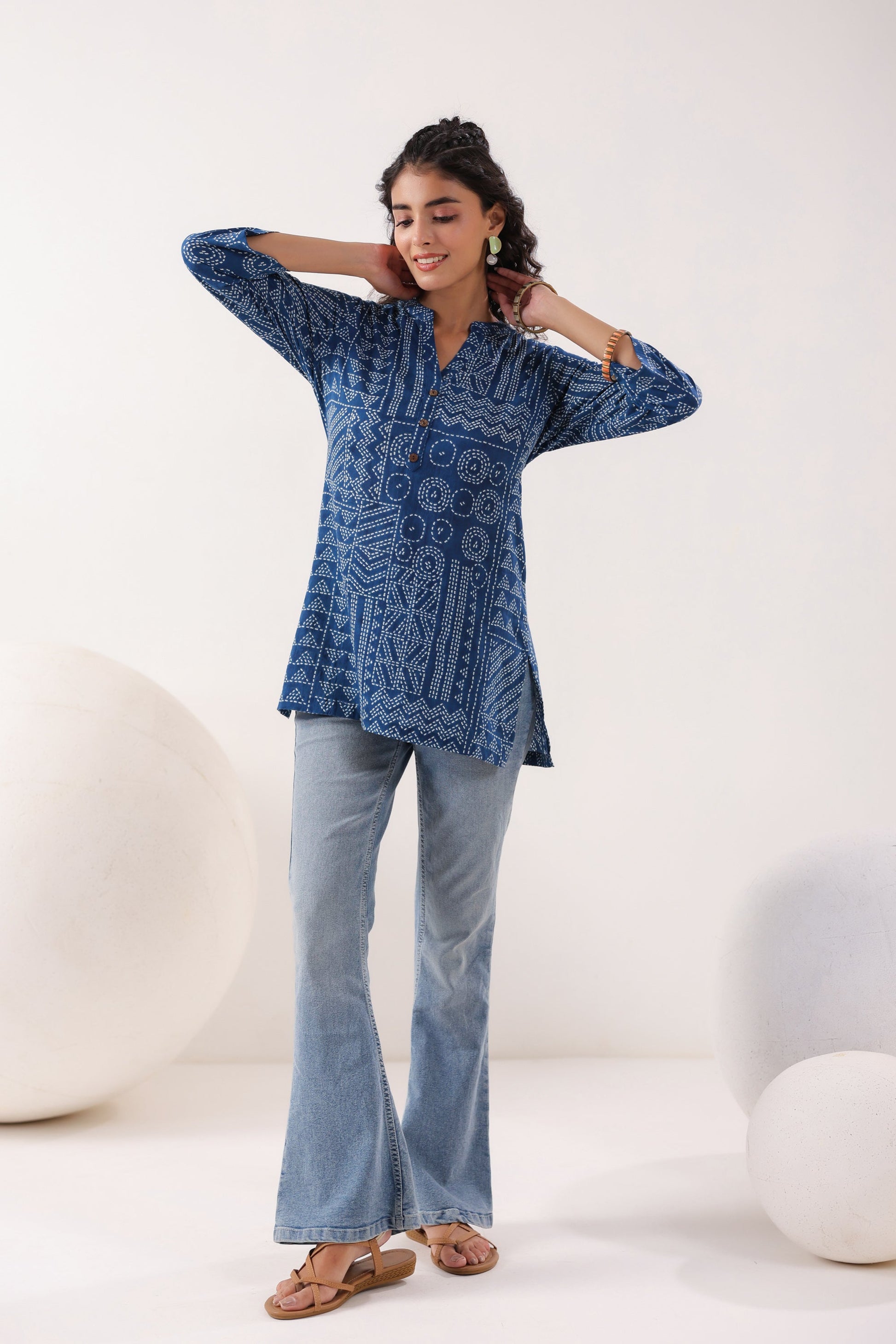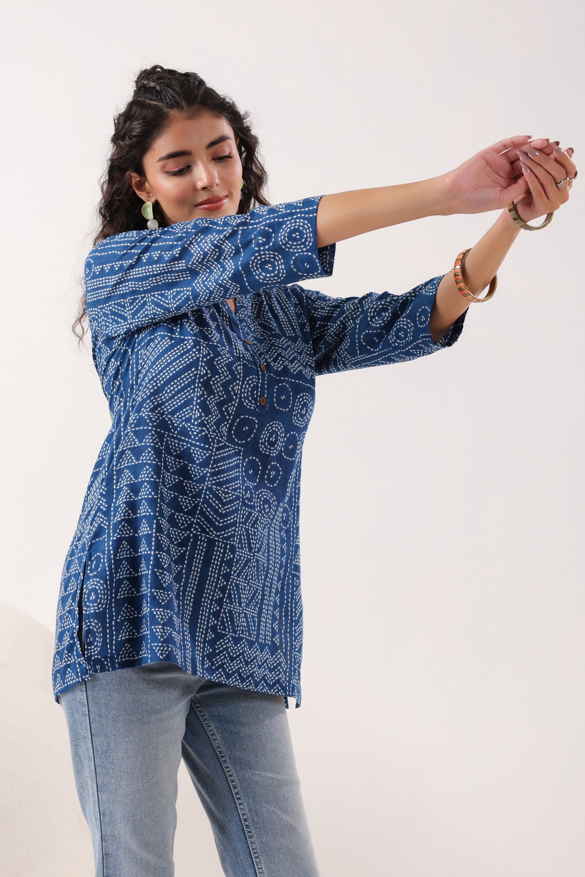 Step into a vibrant world with this Tribal Echo Printed Blue Cotton Top! Crafted from soft, breathable cotton, it keeps you cool while turning heads with its bold tribal-inspired patterns. Perfect for adding a playful pop to your everyday look, this top promises comfort and style in every wear. Let your wardrobe echo your fun spirit!